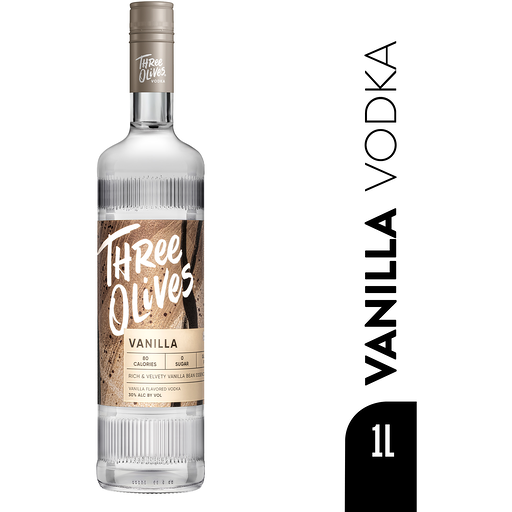 Three Olives® Vanilla Vodka has a sweet aroma and the rich velvety flavor of vanilla bean. Zero sugar, 80 calories and gluten free, Three Olives® Vanilla is perfect in a shot or for any cocktail. (Crafted with all-natural flavors; 30% ABV – 60 proof). At the base of all Three Olives® flavors is an award-winning, premium vodka 5x distilled, yielding an exceptionally smooth vodka that is zero sugar, low calorie, and gluten free. Made in the USA.