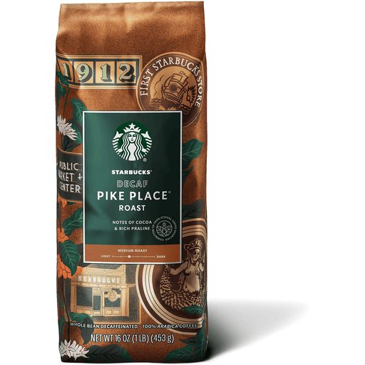 Starbucks Pike Place Decaf Whole Bean Coffee, Medium Roast, 1 Lb (Pack Of 6)